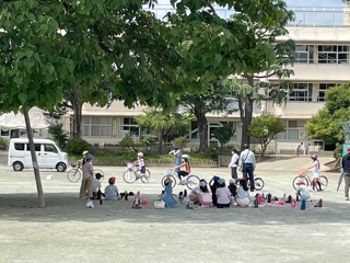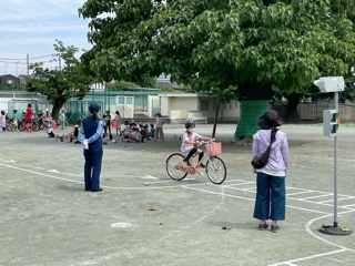 玉川警察署交通課の皆さんにお越しいただき、自転車安全教室を行いました。校庭では、安全な乗り方のポイントを実地に学びました。体育館では映像を通して学びました。PTAの皆さんにもお手伝いいただきました。ありがとうございました。