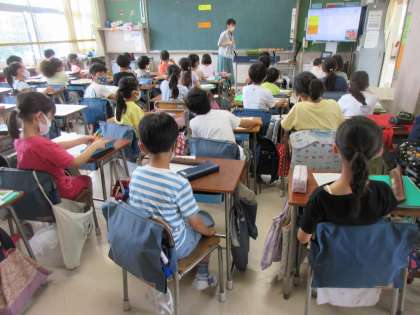 「ゆかいな牧場」という曲の鑑賞の学習。リコーダーが奏でるきれいな音色を耳をすませて聞いていました。
