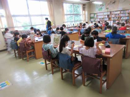 3年生はクラスの人数が一番多いですが、図書室で落ち着いて読書をしていました。