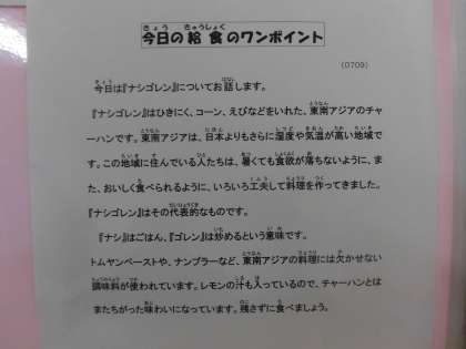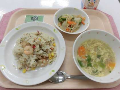 【献立】ナシゴレン・こんにゃくサラダ・レタススープ・牛乳