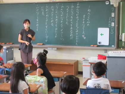 「クラスのいいところを見つけよう」は代表委員会が考えた企画です。1年生がクラスで話し合いをしていました。クラスのいいところをたくさん見つけられていました。代表委員も1年生もすてきな子どもたちです。