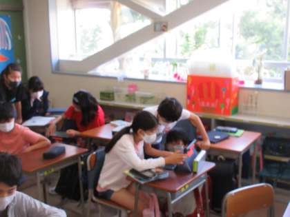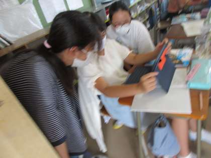 子どもたちはロイロノートを使って観察レポートをグループで作成し、先生に提出します。