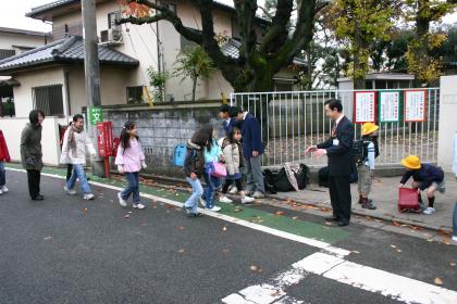 12月2日 前夜の雨も何とかあがり、「ふれあい登校デー」が行われました。はじめての試みでしたが、多くのご家庭の方が参加してくださいました。深沢中学校の生徒会のメンバーも正門前で、登校してくる小学生に元気にあいさつしてくれました。各町会の方々もご協力していただき、感謝しています。寒い中、本当にありがとうございました。今後も、あいさつを通して地域のふれあいを深めていきます。