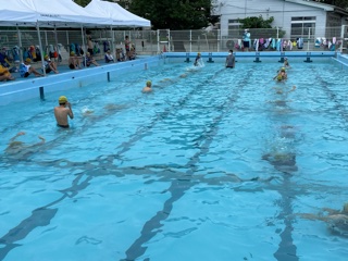 今日は1、3組の割り当てでした。卒業アルバム用のクラス写真を撮ったあとは、けのび、ばたあし。9月に予定されている水泳記録会に向けての練習をしました。