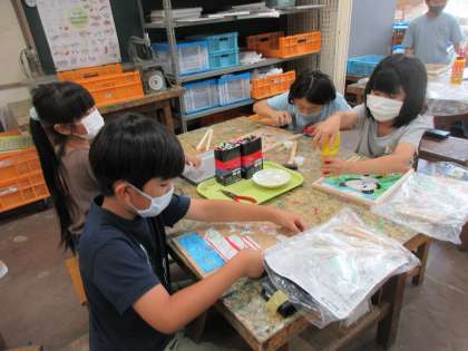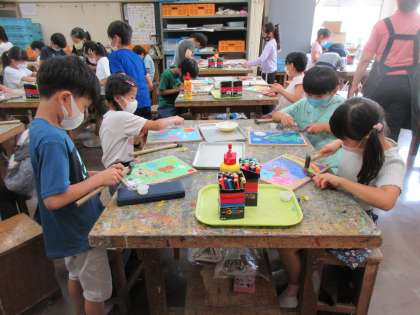 「コンコンコンコン」と子どもたちは金槌を使ってくぎを打つのがじょうずになってきました。ボードゲームも間もなく完成です。