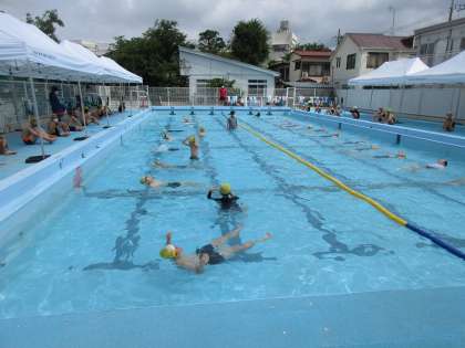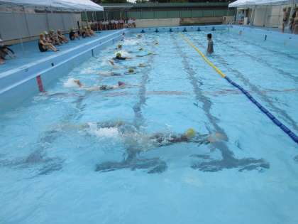 6年1,2組がプールに入りました。子どもたちはもぐったり、浮いたり、泳いだりしながら、水泳の感覚を取り戻しているようです。