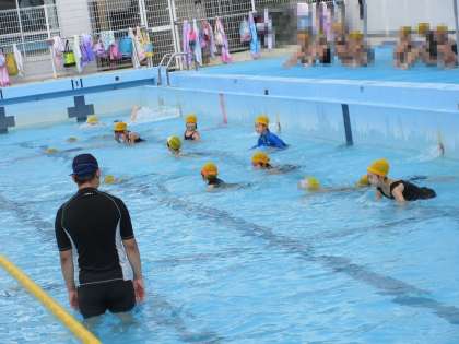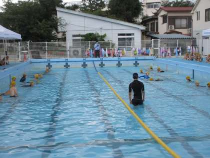 2年1,3組がプールに入りました。今年度はプールの参加人数を少なくするために2クラスずつの実施です。