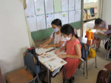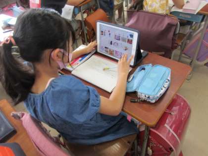 自分の興味のある職業について調べて、まとめる学習。子どもたちは端末で調べたり、本で調べたりと自分で選択しながら学習に取り組んでいました。