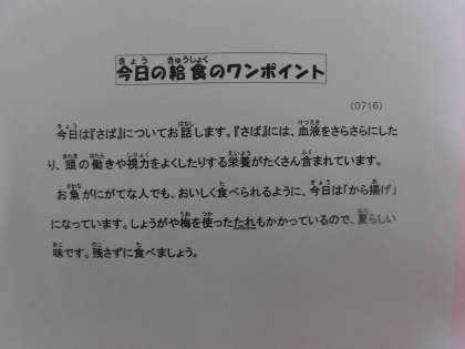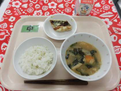 【献立】麦ごはん・揚げ鯖の梅肉風味・具だくさんみそ汁・牛乳