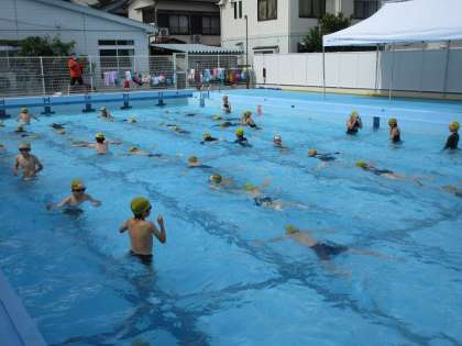 午後は4年1,2組のプールです。サポートし合いながらみんなで楽しく学習していました。