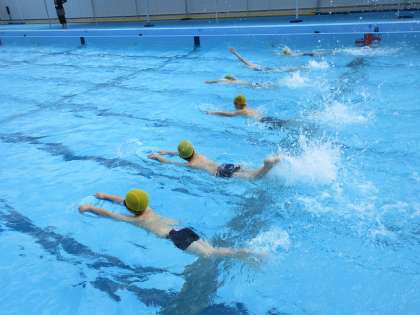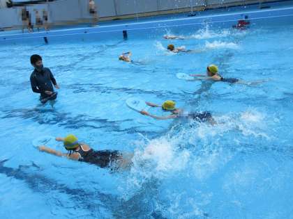 1学期もあと2日です。1,2校時は5年1,3組のプール。子どもたちは自分の泳力に合った練習をしていました。