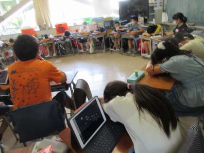 1学期のお楽しみ会。子どもたちが端末を使った企画を考えたようでした。