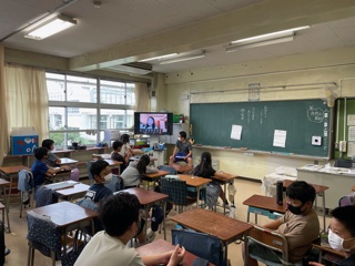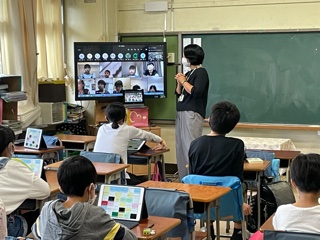 6年生は、Teamsを使って、夏休みの思い出を発表し合っています。