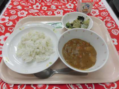 【献立】ごはん・チキンカレー・じゃこ入りサラダ・牛乳