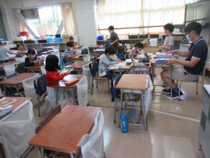 2年生の各クラスの様子です。4時間目ですが、自宅にいる友達とつながりながら落ち着いて学習をしています。