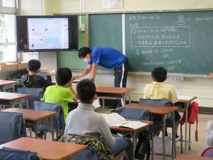 分散登校は今週で終わりとなります。4年生の算数の授業の様子です。子どもたちは落ち着いて学習しています。