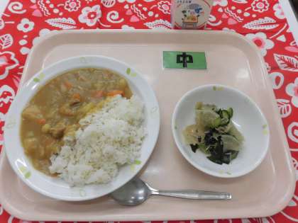 【献立】ごはん・チキンカレー・じゃこ入りサラダ・牛乳