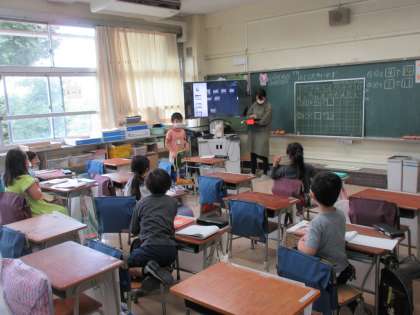 1年生の授業。算数や道徳、ロイロノートを活用した授業をしているクラスもありました。