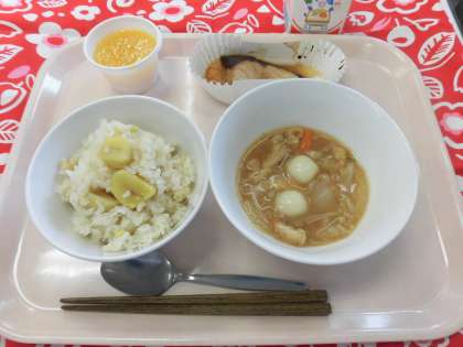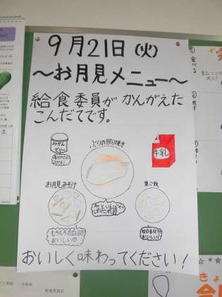 今日は、「中秋の名月」。これにちなんで給食委員会の子どもたちが考えたメニューを実施しました。テーマは「お月見」です。