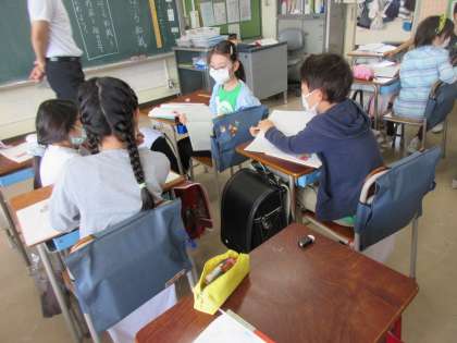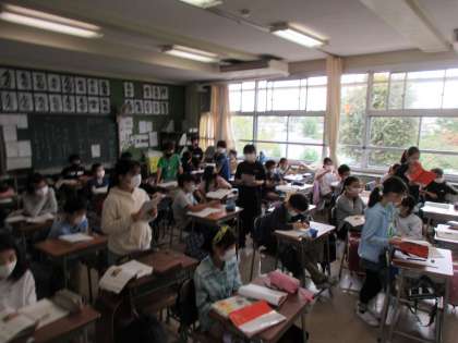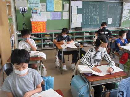 ズームによる学校公開の2日目です。4年生は説明文の段落わけについてグループごとの考えを発表していました。
