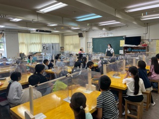 一斉授業用の新しいパーテーションを協力して設置しました。