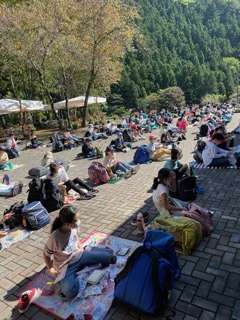 ふじやまビレジに到着。広場で開室式をした後お弁当を食べました。