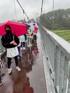 吊り橋を渡るとゴールの田園プラザに到着。ここで昼食、お土産を買い、帰校します。
