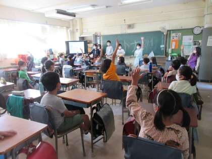 今回は教室でいすに座り、対面での実施です。制約がある中ですが、6年生の工夫、リーダー性、やさしさが見られ、すてきな時間になりました。