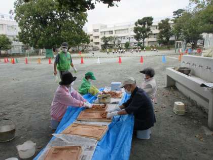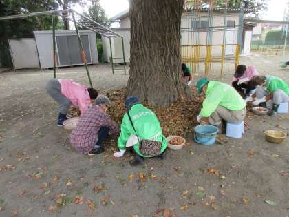 今日も地域やPTAの方がぎんなんの実を拾い、選別する作業をしてくださっています。ありがとうございます。今回もできる方法で実施するように準備をしていただいています。