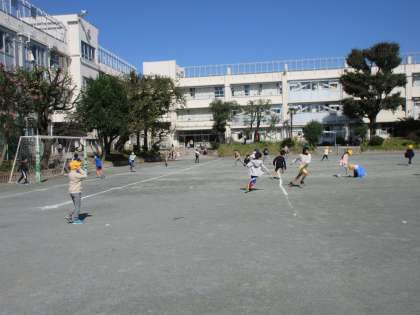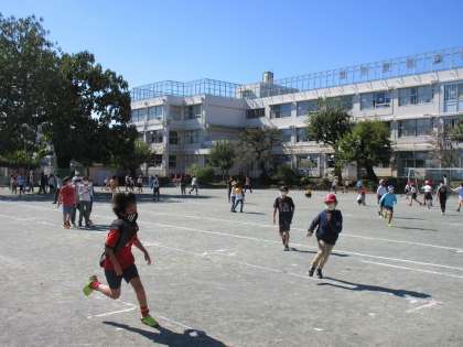 深小の広い校庭が子どもたちのところに戻ってきました。子どもたちは元気に走り回ったりしながら休む時間を楽しんでいます。