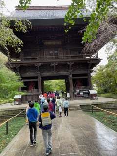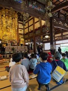 九品仏浄真寺に到着。本堂に上がって見学。お寺の方に説明をしていただいています。