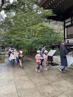 雨がやんでいます。浄真寺ではクラスごとに見学しています。