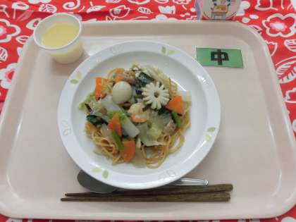 【献立】あんかけ焼きそば・ピーチゼリー・牛乳