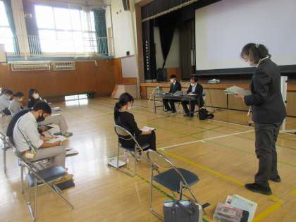 2年生より授業についての提案があり、活発に協議をしました。その後青山学院大学月岡正明先生より指導をしていただきました。