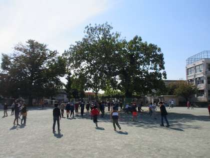 ぽかぽか陽気の中休み。子どもたちはおのおの友達と元気に遊んでいます。