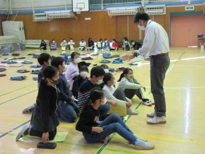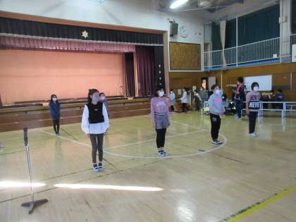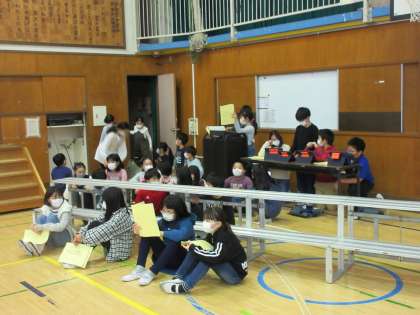 5年生は最後の学芸会。部隊、照明、音響など役割に分かれて行います。フロアを使って場所を広くしています。