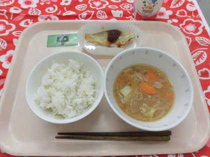 【献立】麦ごはん・魚のステーキソースかけ・みそ汁・牛乳