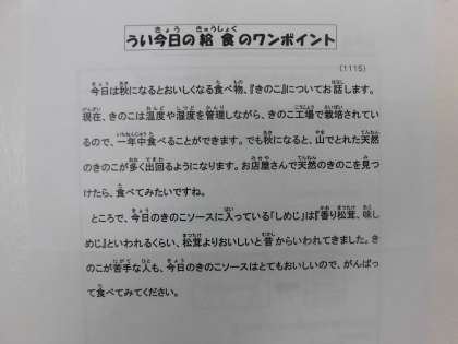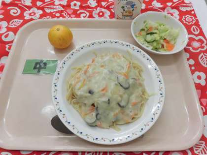 【献立】スパゲティー・きのこソース・キャベツサラダ・みかん・牛乳