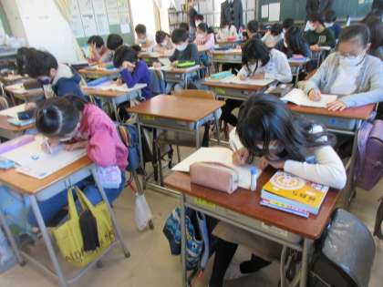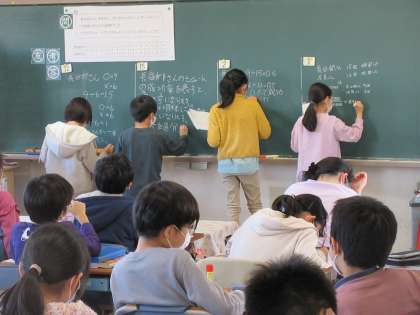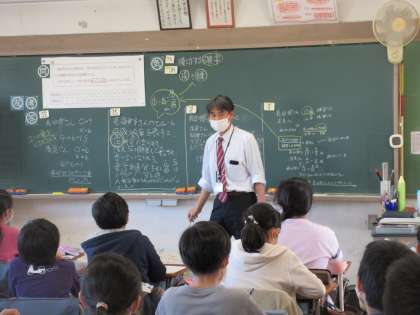 5年生の指導教諭が他校の先生に算数の授業を公開しました。確率の授業で子どもたちは互いの考えをもとにして2つの量を比べると何かを表す数になることについて考えていました。