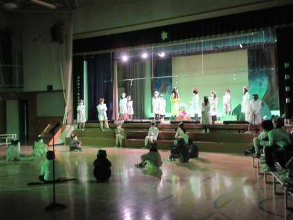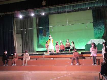 2回目の学芸会の4年生の劇は「森は生きている」。心にしみる劇をみんなで演じることができました。