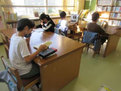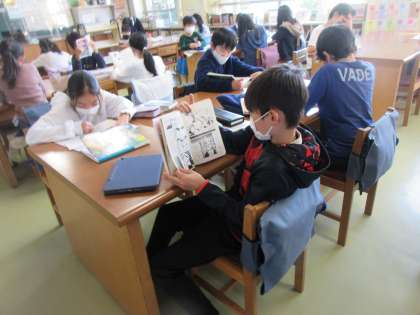 5年生が図書室で静かに読書をしていました。学芸会を前にこうした落ち着いた時間をもつことはいいことです。