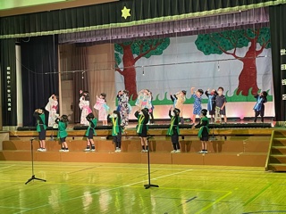 役になりきって楽しい劇ができました。フィナーレは待機している子もみんなで歌に合わせて手話を披露しました。
