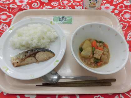 【献立】ごはん・いなだの照り焼き・冬瓜のそぼろ煮・牛乳