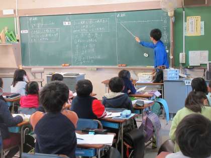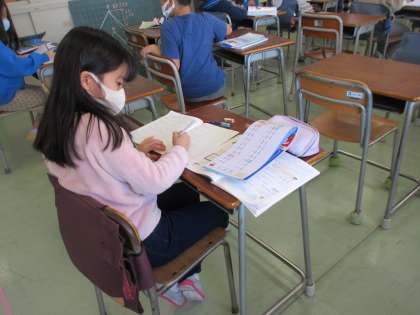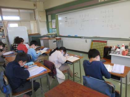 3年生は分数の学習。数直線で分数を理解したり、分数のたし算やひき算をしたりしていました。落ち着いて学習しています。