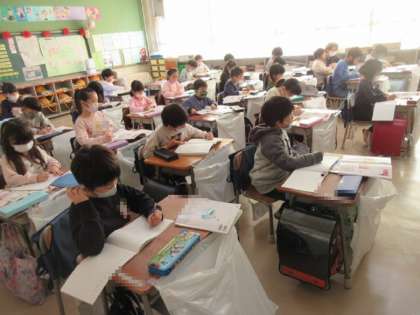 かさの学習です。日々の学習では学習用端末を使っていますが、ノートに書く活動も大切にしています。