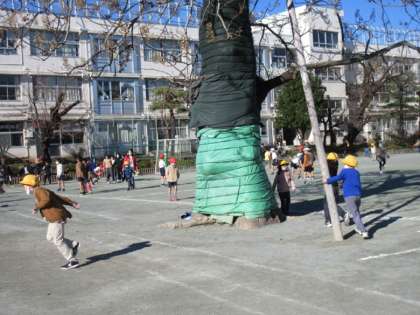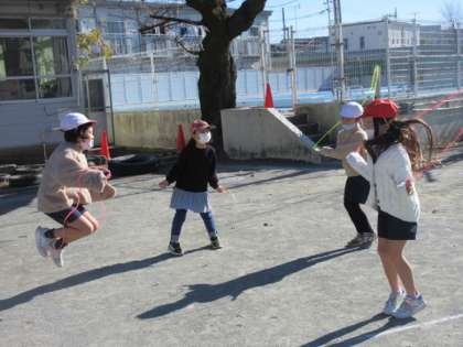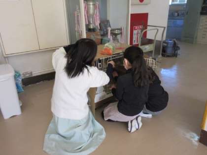 子どもたちは元気に遊んでいます。マロンにえさをあげている子もいます。