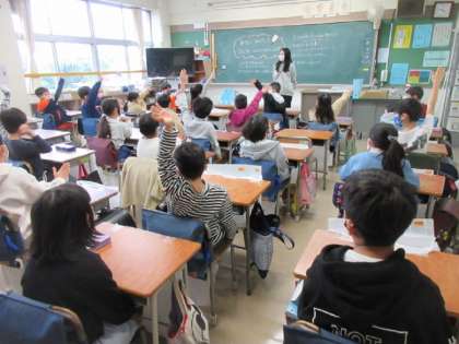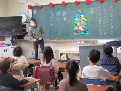 3学期が始まりました。教室では先生が今年の干支や3学期の学校生活について話をしています。