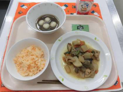 【献立】あけぼのごはん・筑前煮・白玉しるこ・牛乳