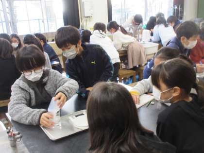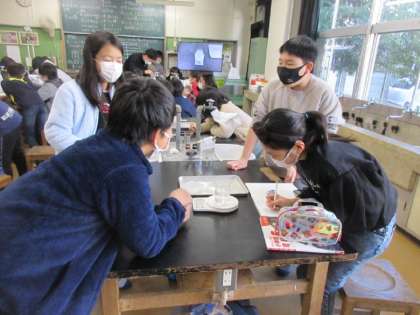 理科の学習では食塩を水に溶かすと重さはどうなるのか。5gの食塩を溶かしたのに結果は4g増や6g増の班もありました。この後どう考察するのかが大切になります。