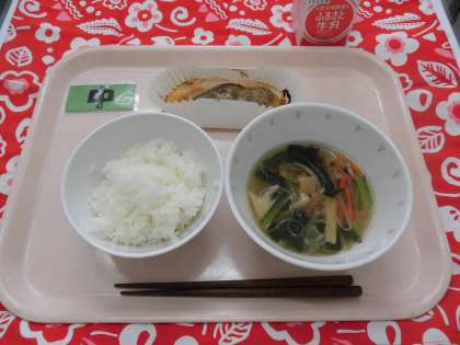 【献立】ごはん・魚のみそマヨネーズ焼き・沢煮椀・牛乳